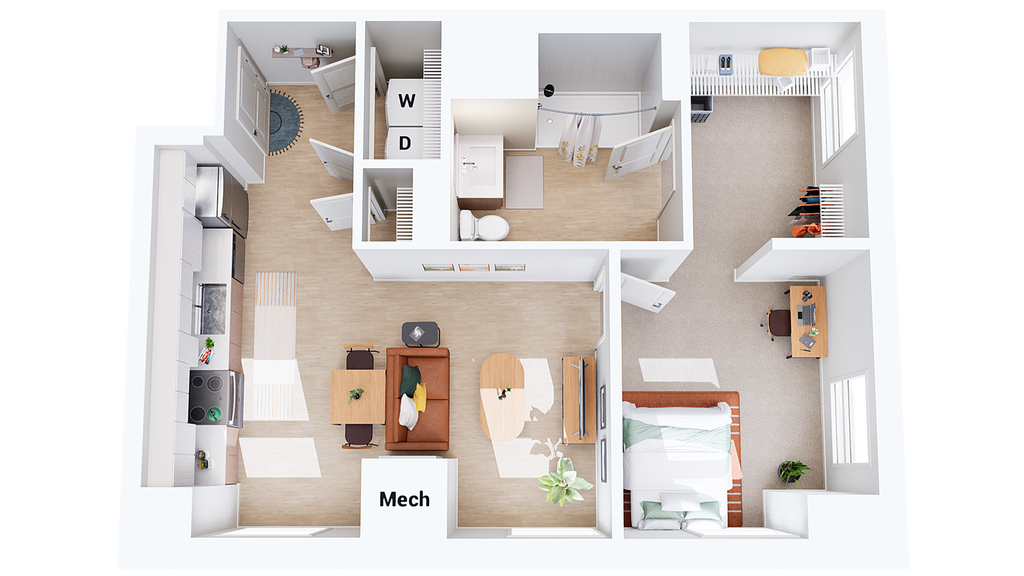 1 Dormitorio, 1 Baño, 558 pies²Precio Mensual TotalDisponible AhoraGalería del Modelo