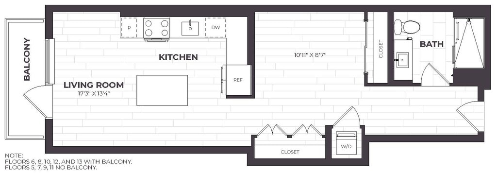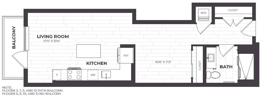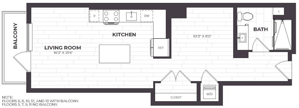 Estudio, 1 Baño, 605 pies²Disponible AhoraGalería del Modelo