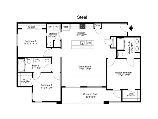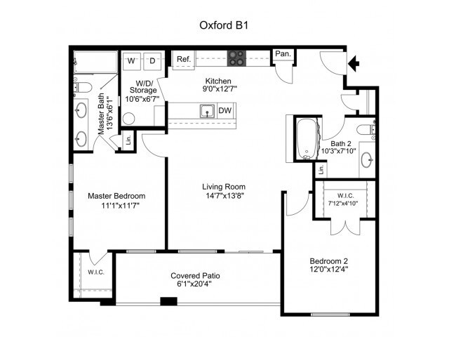 Modelo de apartamento: CobaltDesde $1,5251 Dormitorio, 1 Baño, 825 sq ftDisponible Ahora![]()