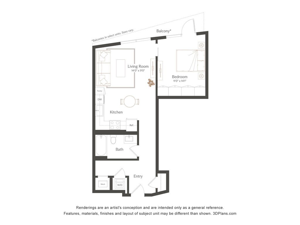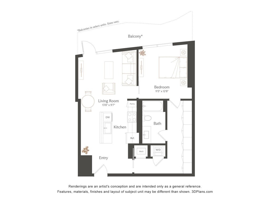 Estudio, 1 Baño, 611 pies²Precio Mensual TotalDisponible AhoraEl más grandeEsta opción tiene las unidades más grandes para este modeloGalería del Modelo