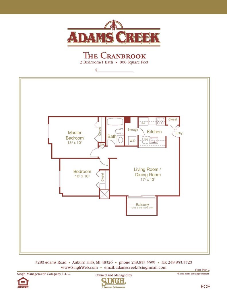 Modelo de apartamento: CranbrookLlame para Precios2 Dormitorios, 1 Baño, 780 sq ftNo Disponible![]()