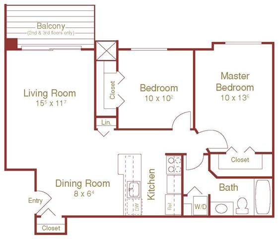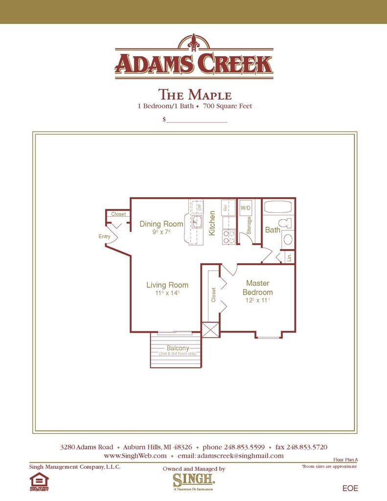 Modelo de apartamento: MapleLlame para Precios1 Dormitorio, 1 Baño, 664 sq ftNo Disponible![]()