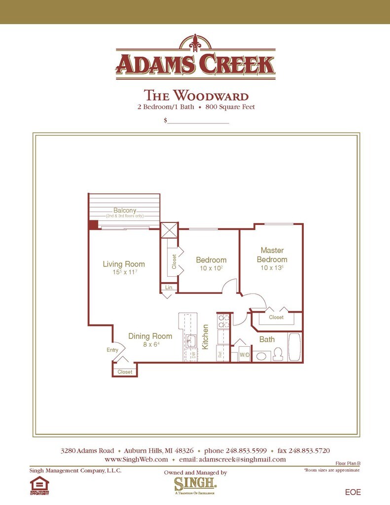 Adams Creek se encuentra en el Barrio Downtown Auburn Hills y el código postal 48326 de Auburn Hills, MI. Esta comunidad está gestionada profesionalmente por Singh Apartments