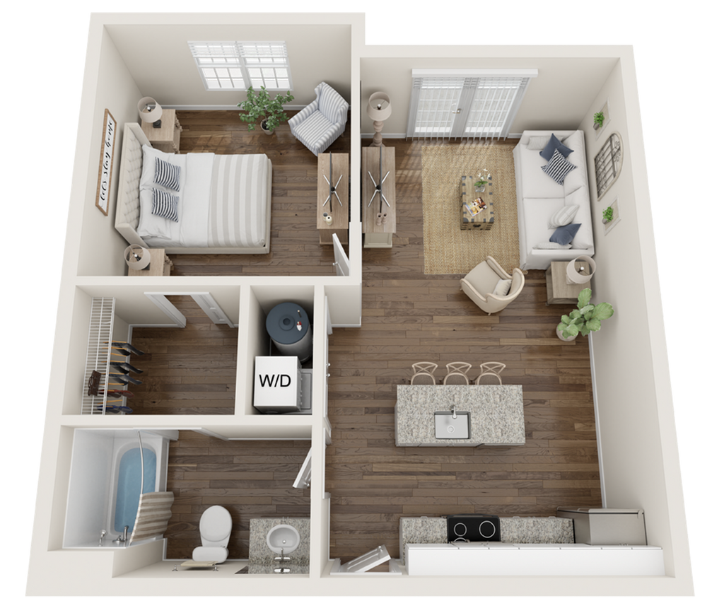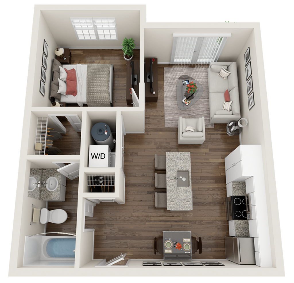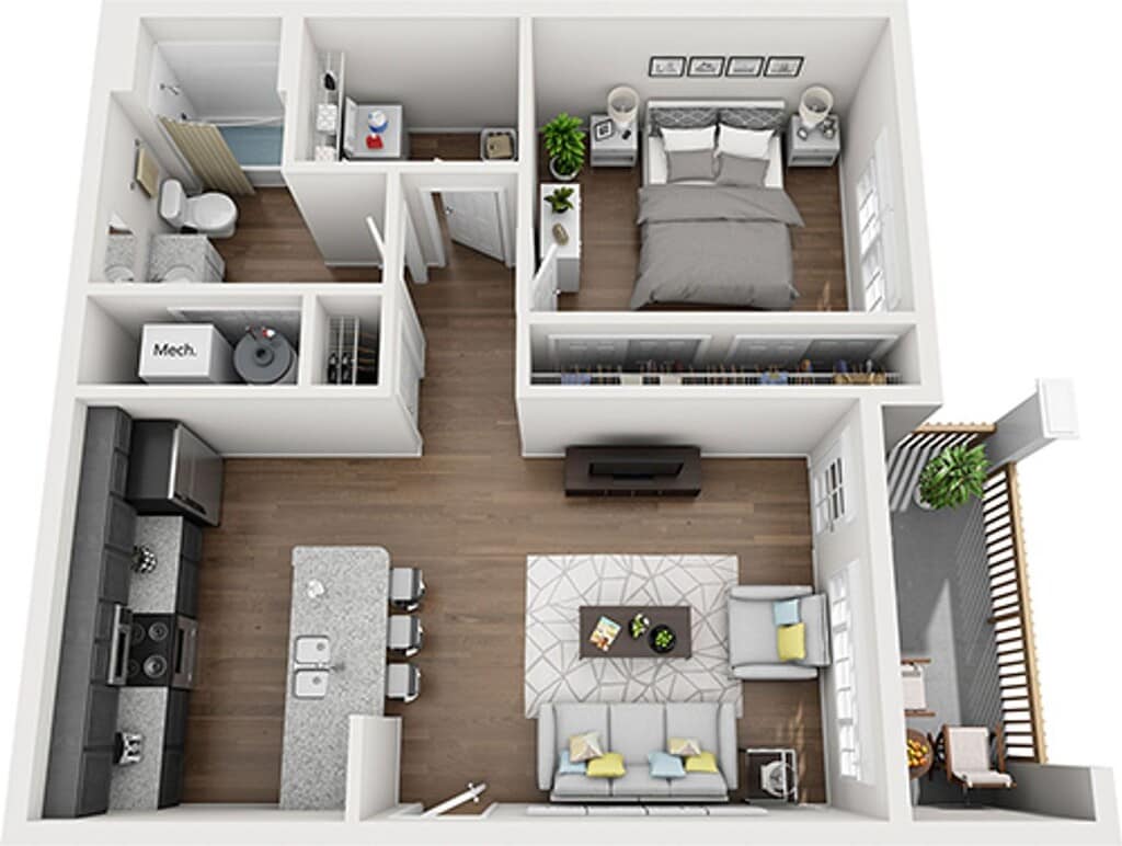 1 Dormitorio, 1 Baño, 850 pies²Disponible AhoraEl más grandeEsta opción tiene las unidades más grandes para este modeloGalería del Modelo