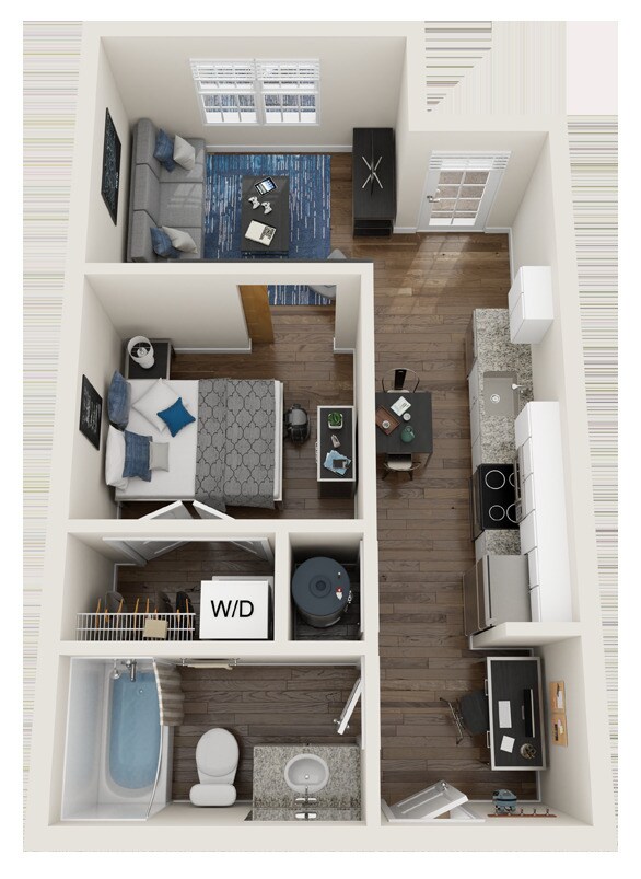 Modelo de apartamento: The Cutter$1,3201 Dormitorio, 1 Baño, 560 sq ftDisponible Ahora![]()