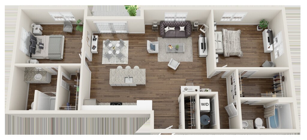 2 Dormitorios, 1 Baño, 890 pies²Disponible AhoraGalería del Modelo