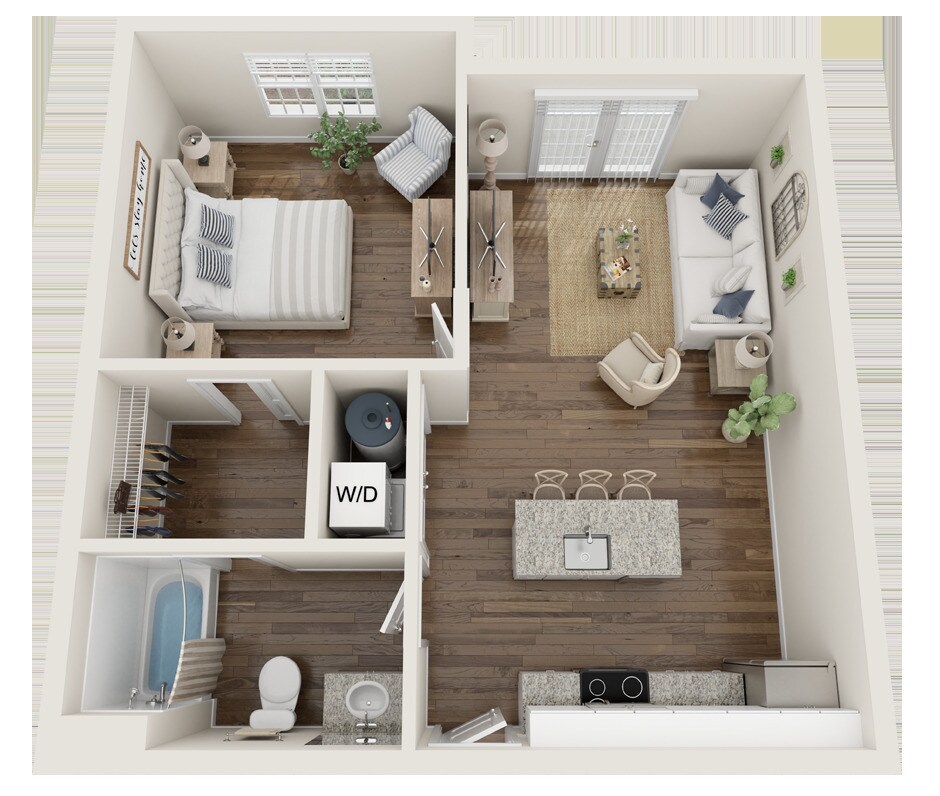 1 Dormitorio, 1 Baño, 750 pies²Disponible AhoraGalería del Modelo