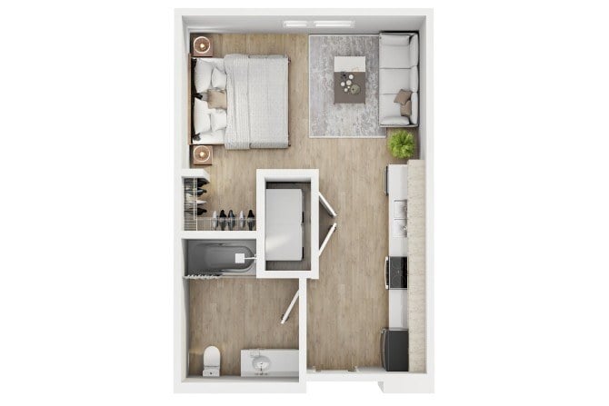 Modelo de apartamento: Studio ADesde $2,000Estudio, 1 Baño, 427-456 sq ftDisponible Ahora![]()