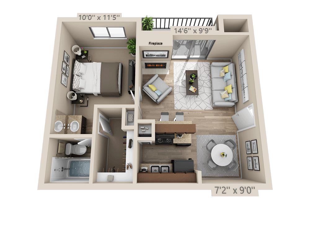 Modelo de apartamento: Studio E1CWDesde $884Estudio, 1 Baño, 528 sq ftDisponible Ahora![]()