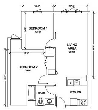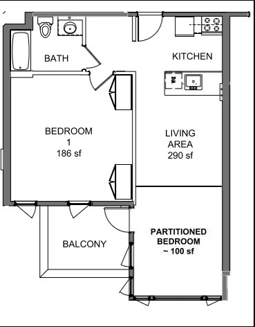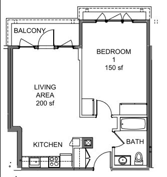 1 Bed / 1 Bath - Plano 2 ![]()