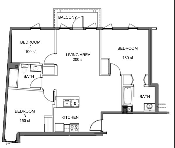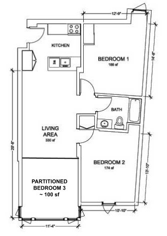 1 Bed / 1 Bath - Plano 3 ![]()