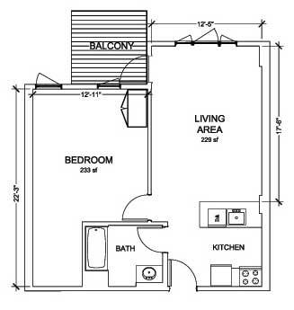 1 Dormitorio, 1 Baño, 600 pies²Disponible AhoraGalería del Modelo
