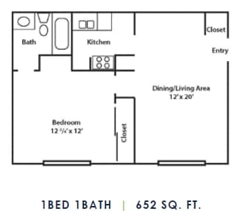 Modelo de apartamento: 1 Bed 1 Bath1 Dormitorio, 1 Baño, 652 sq ftNo Disponible![]()