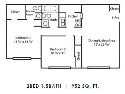 Modelo de apartamento: 2 Bed 1.5 Bath2 Dormitorios, 1.5 Baños, 952 sq ftNo Disponible![]()