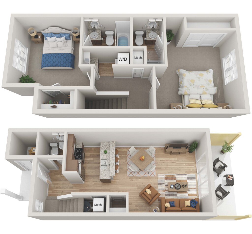 Modelo de apartamento: 2 Bedroom 2.5 BathLlame para Precios2 Dormitorios, 2.5 Baños, 1060 sq ftNo DisponiblePlanosFotos![]()