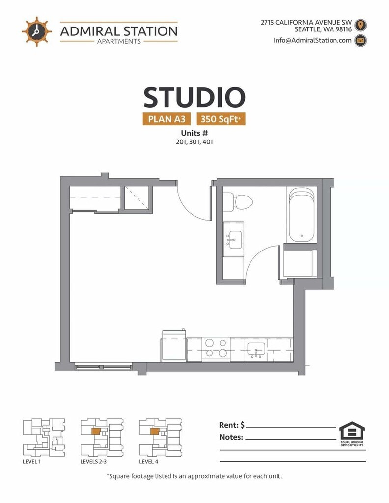Admiral Station Apartments ofrece apartamentos de Estudio desde $1,490 con 350 pies cuadrados. Aquí está el precio actual y la disponibilidad: