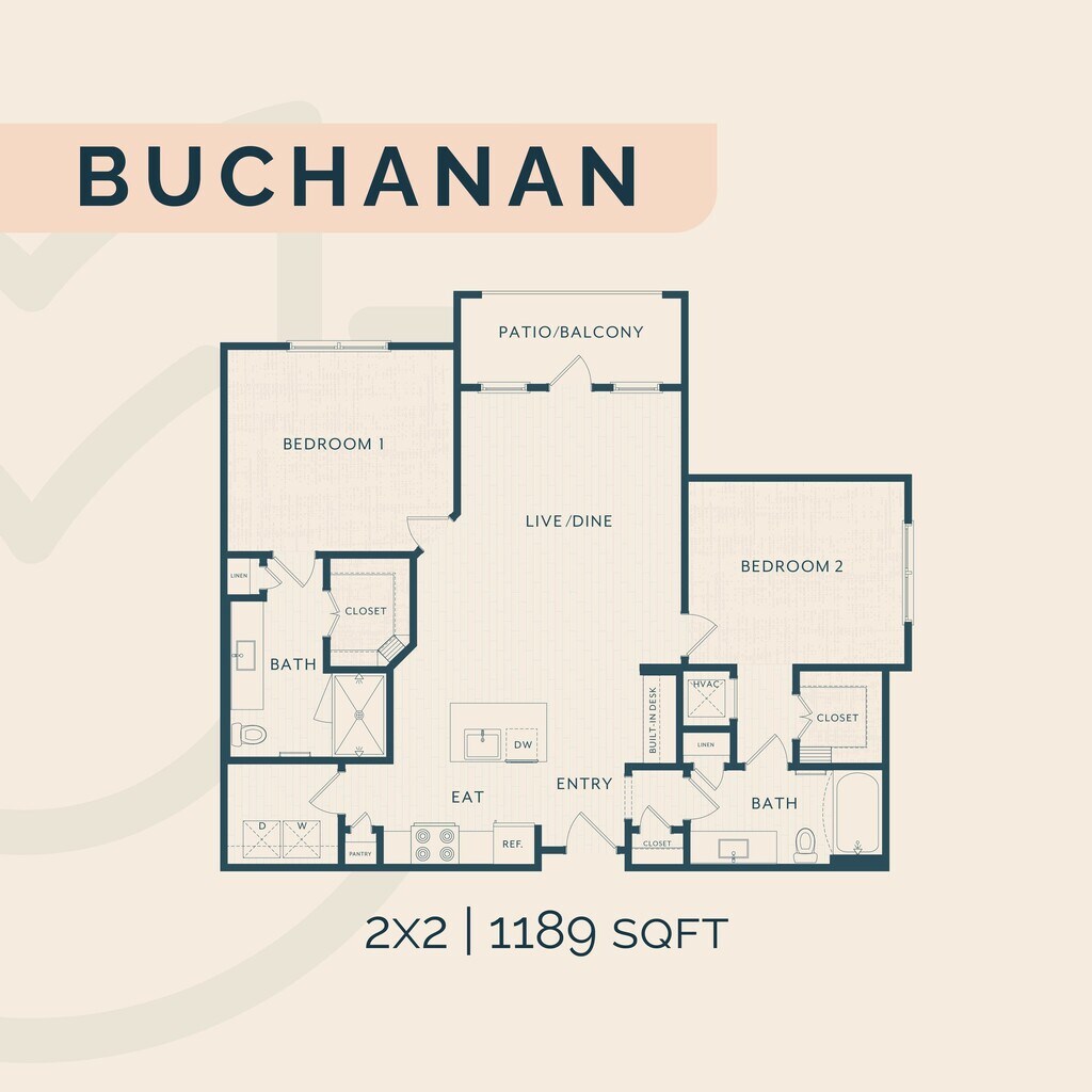 Modelo de apartamento: Coleto - HCDesde $1,3791 Dormitorio, 1 Baño, 599 sq ftDisponible Ahora![]()