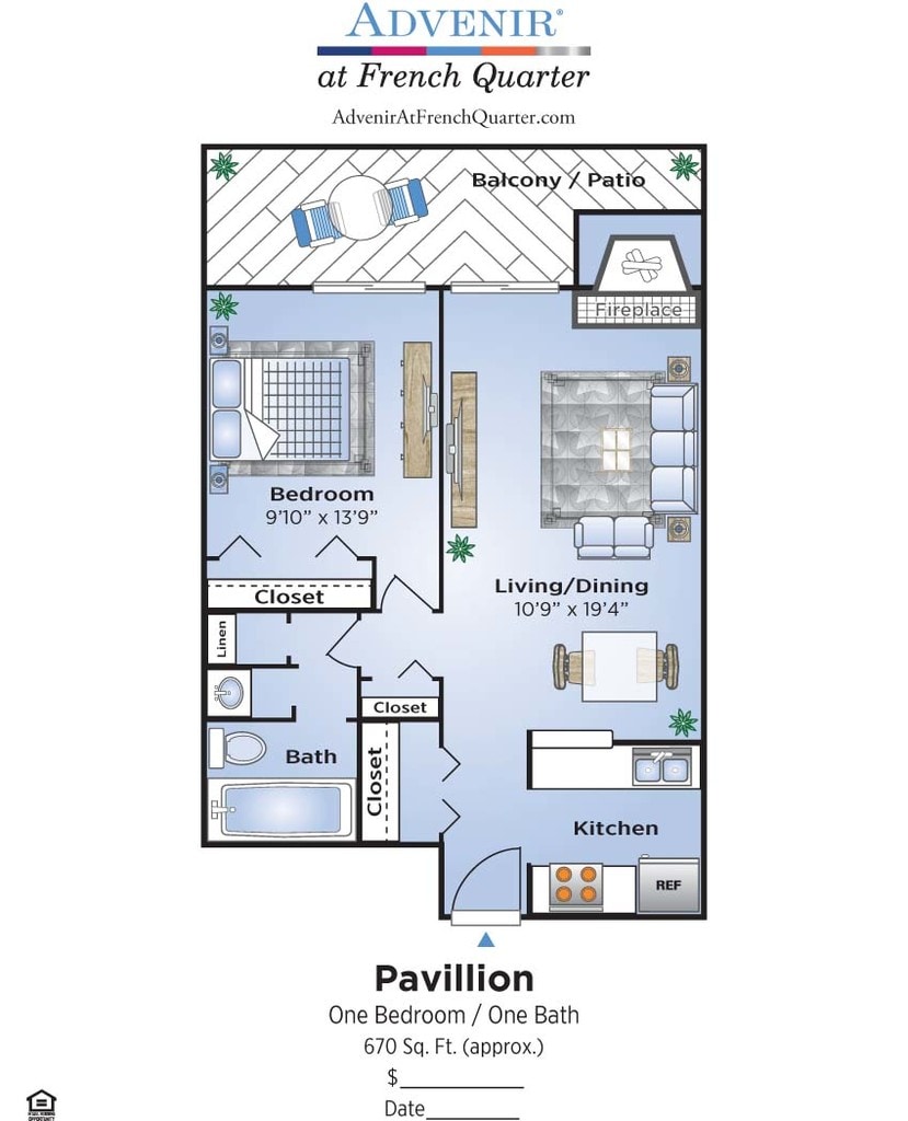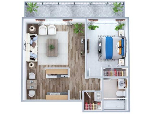 Modelo de apartamento: PavillionDesde $9991 Dormitorio, 1 Baño, 670 sq ftDisponible AhoraPlanosFotos![]()