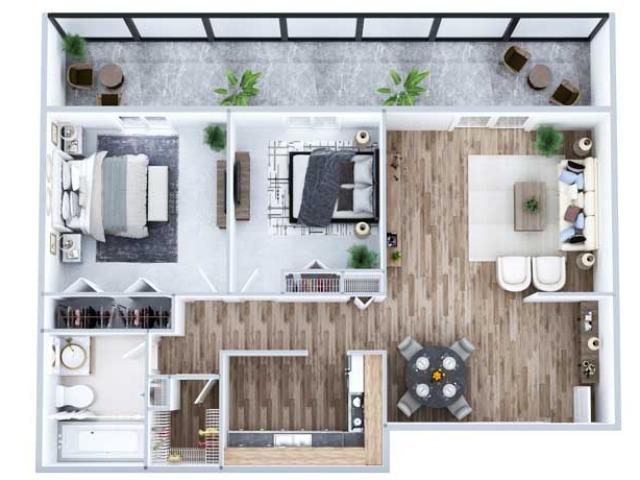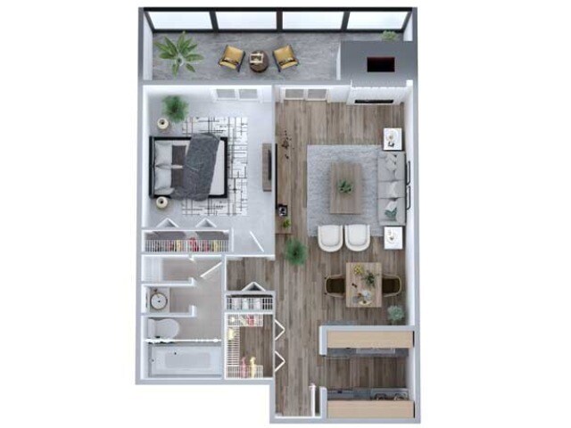1 Dormitorio, 1 Baño, 670 pies²Disponible AhoraGalería del Modelo