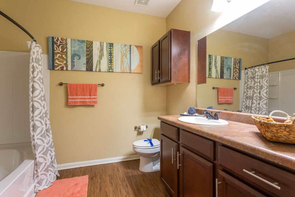 Comienza con el plano de planta perfecto. Lo hemos reducido a una opción para una casa de una, dos y tres habitaciones para que no tengas que buscar mucho para encontrar una casa espaciosa pero lo suficientemente acogedora con el diseño correcto. Encuentra un lavaplatos, un refrigerador, conexiones para lavadora y secadora, una lavadora y una secadora si no deseas encontrar tus propias máquinas y una bañera romana para darte la bienvenida a casa. Encuentra dos centros comerciales, el George Bush Park, Typhoon Texas y otras opciones locales para disfrutar de tiendas, restaurantes y lugares de entretenimiento a solo minutos de casa.