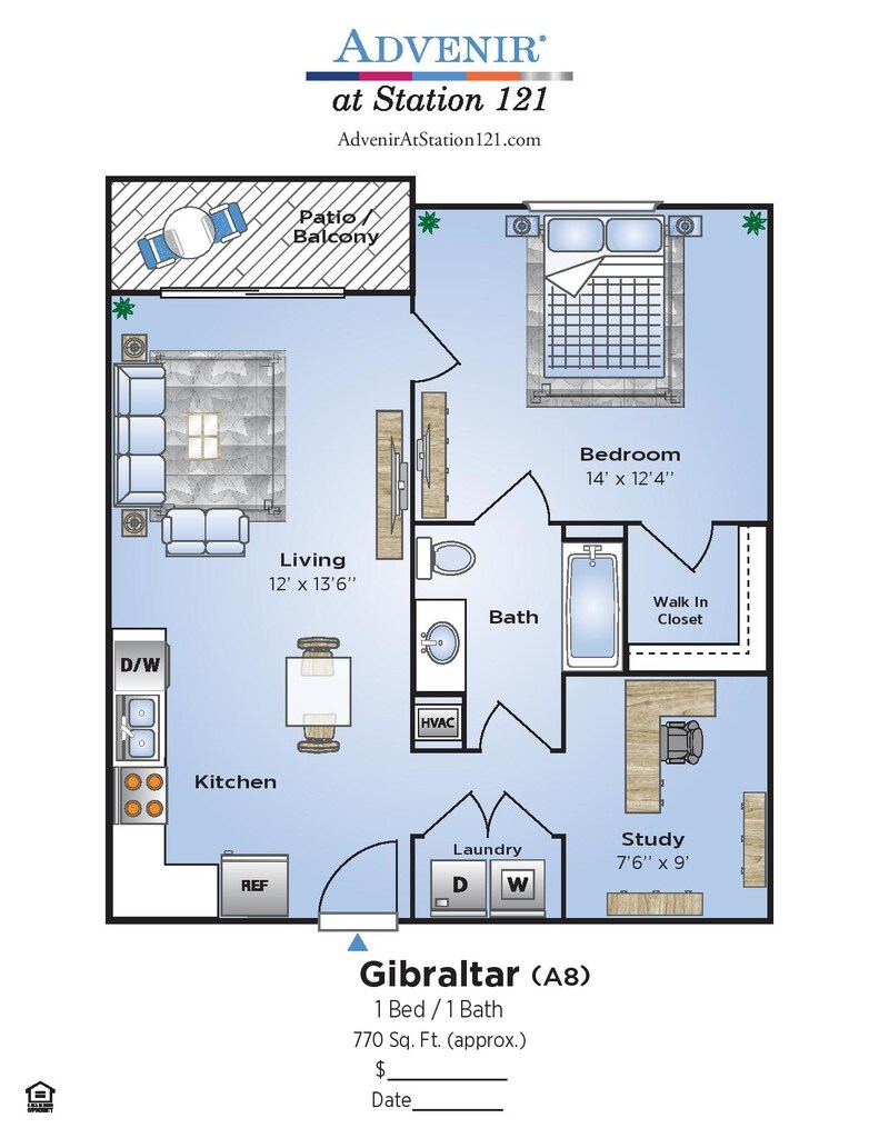 Advenir at Station 121 ofrece apartamentos de Estudio a 2 Dormitorios desde $1,034 con 567–1,394 pies cuadrados. Aquí está el precio actual y la disponibilidad: