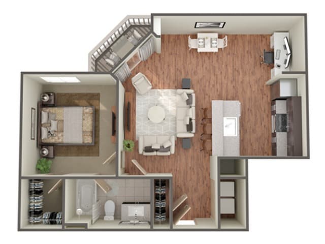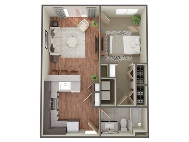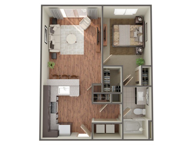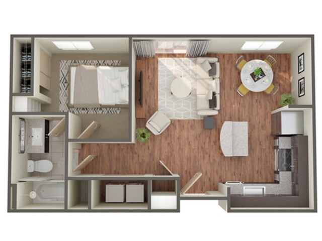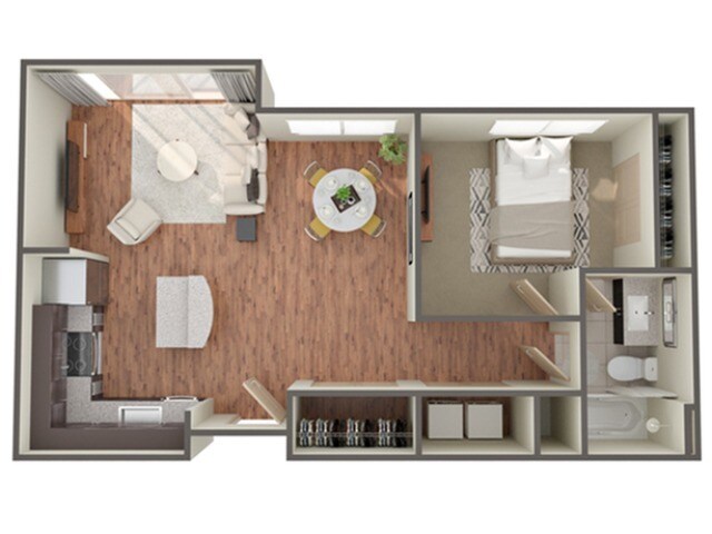 Modelo de apartamento: BasebedDesde $1,2491 Dormitorio, 1 Baño, 648 sq ftDisponible Ahora![]()