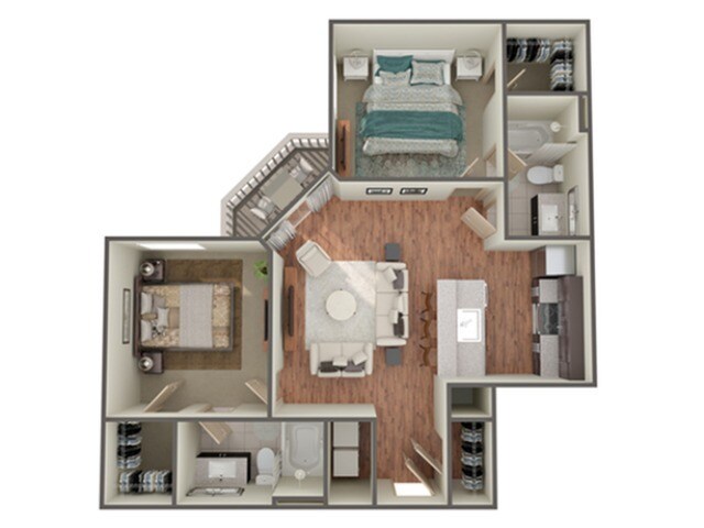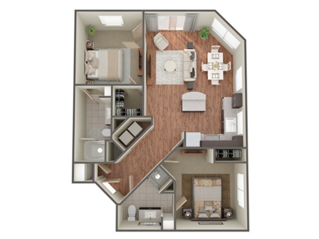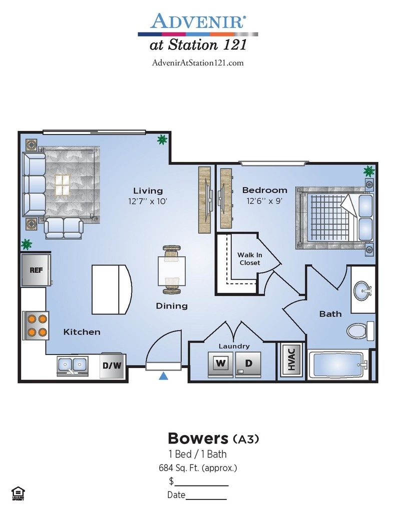Modelo de apartamento: BowersDesde $1,2741 Dormitorio, 1 Baño, 684 sq ftDisponible Ahora![]()