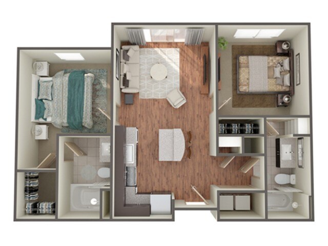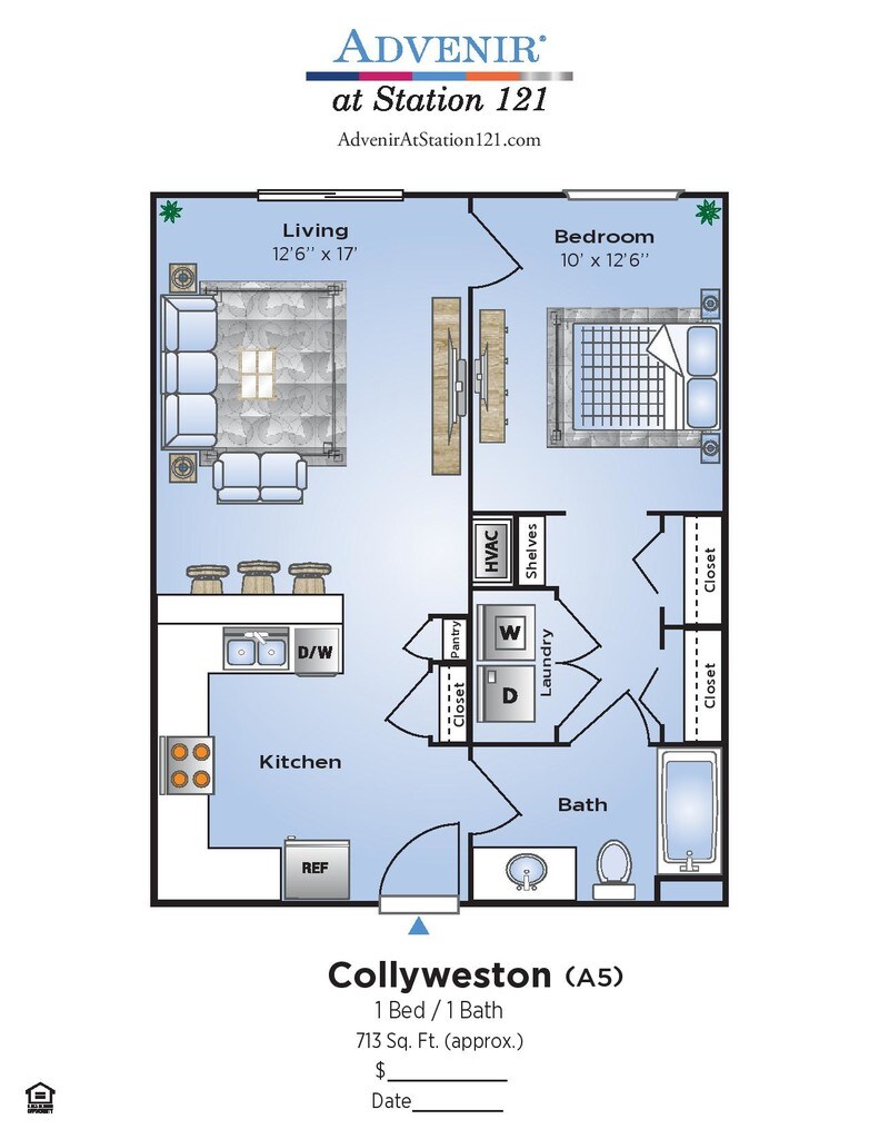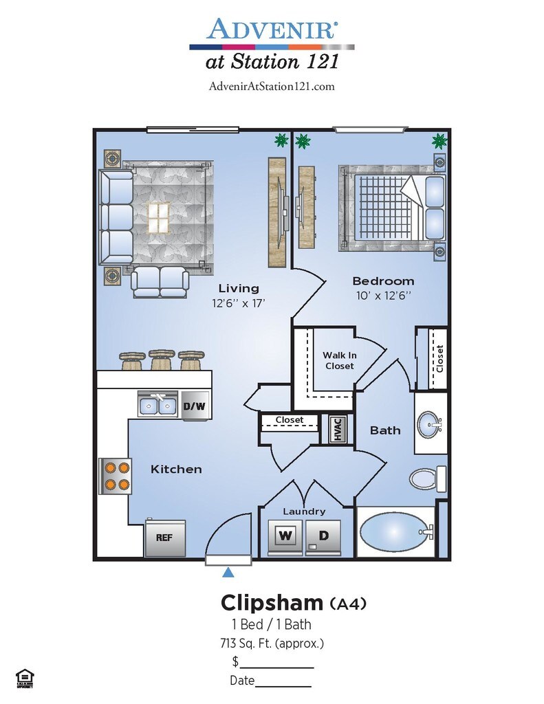 Modelo de apartamento: ClipshamDesde $1,3601 Dormitorio, 1 Baño, 713 sq ftDisponible Ahora![]()