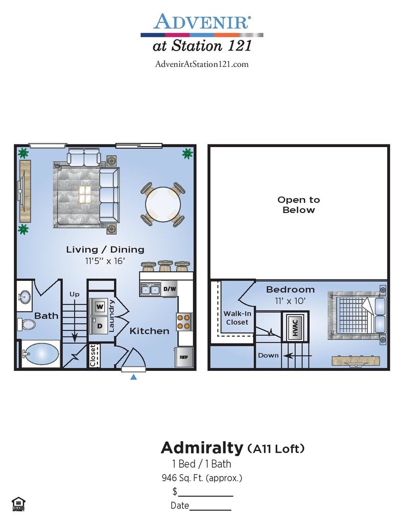 1 Dormitorio, 1 Baño, 713 pies²Disponible AhoraGalería del Modelo