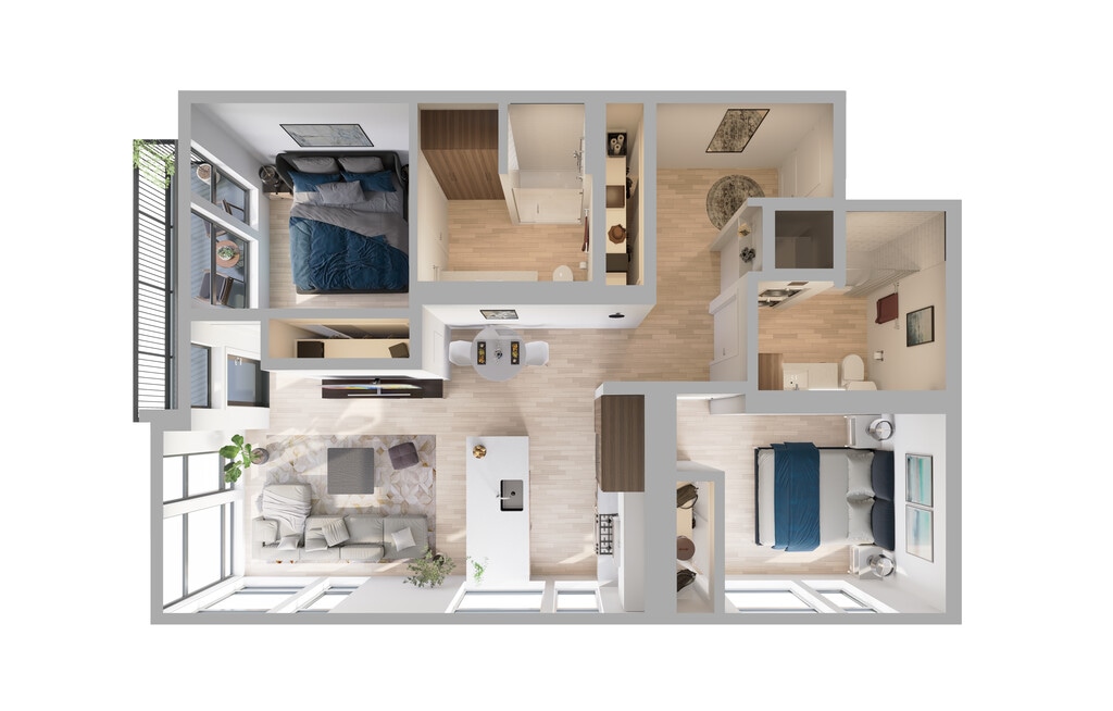 Modelo de apartamento: A$2,9972 Dormitorios, 2 Baños, 940 sq ftDisponible November 26, 2025![]()
