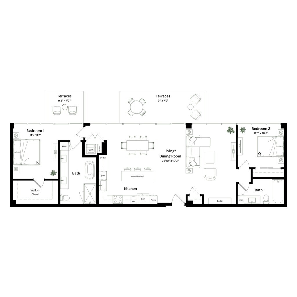 Modelo de apartamento: A5$3,2311 Dormitorio, 1 Baño, 866 sq ftDisponible AhoraLos planos son representaciones artísticas. Todas las dimensiones son aproximadas. El producto y las especificaciones reales pueden variar en tamaño o detalle. No todas las características están disponibles en cada vivienda en alquiler. Por favor, consulta con un representante para obtener más detalles.