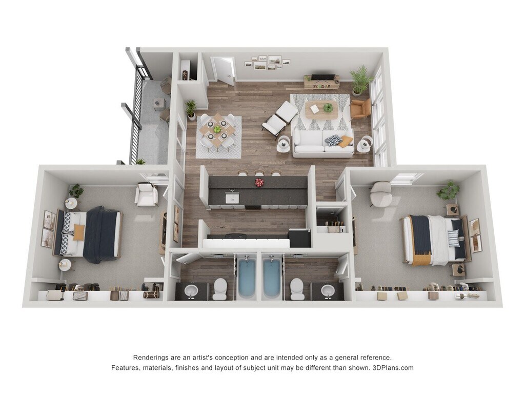 Modelo de apartamento: B22 Dormitorios, 2 Baños, 991 sq ftDisponible December 8, 2025![]()