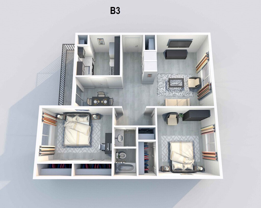 3 Dormitorios, 2 Baños, 1250 pies²Disponible Nov 7Galería del Modelo