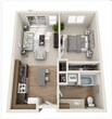 1 Dormitorio, 1 Baño, 596-700 pies²Disponible AhoraGalería del Modelo