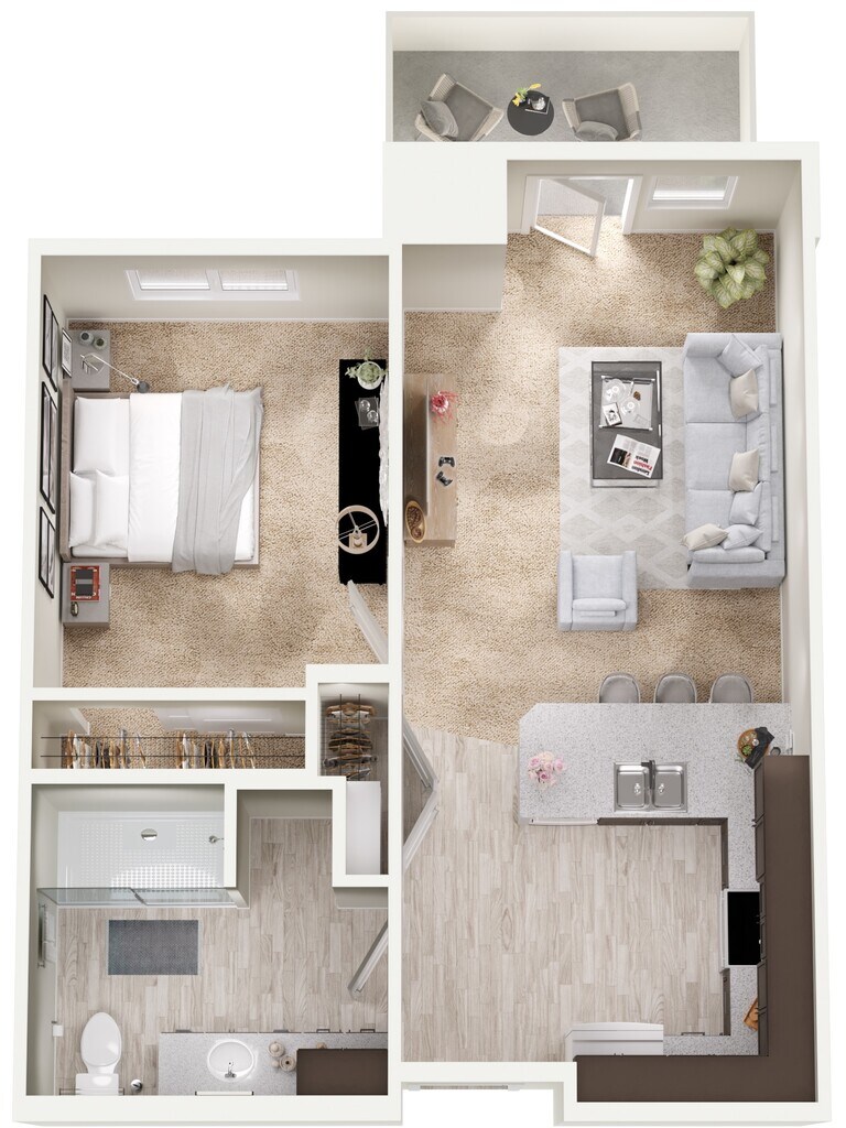 Modelo de apartamento: 0x1 - A1Desde $1,914Estudio, 1 Baño, 495 sq ftNo Disponible![]()