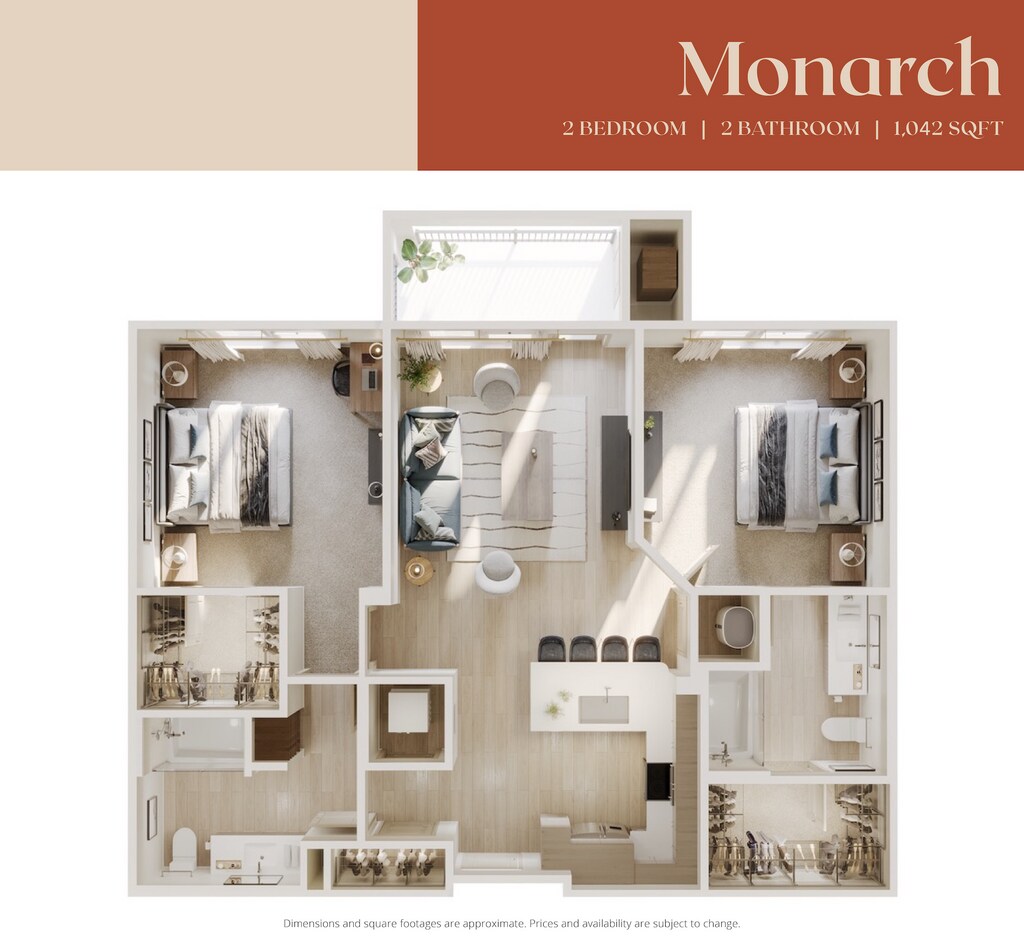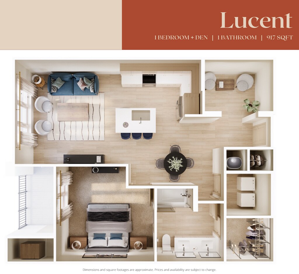 Modelo de apartamento: LucentDesde $1,8101 Dormitorio, 1 Baño, 917 sq ftDisponible December 24, 2025![]()