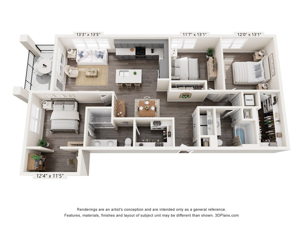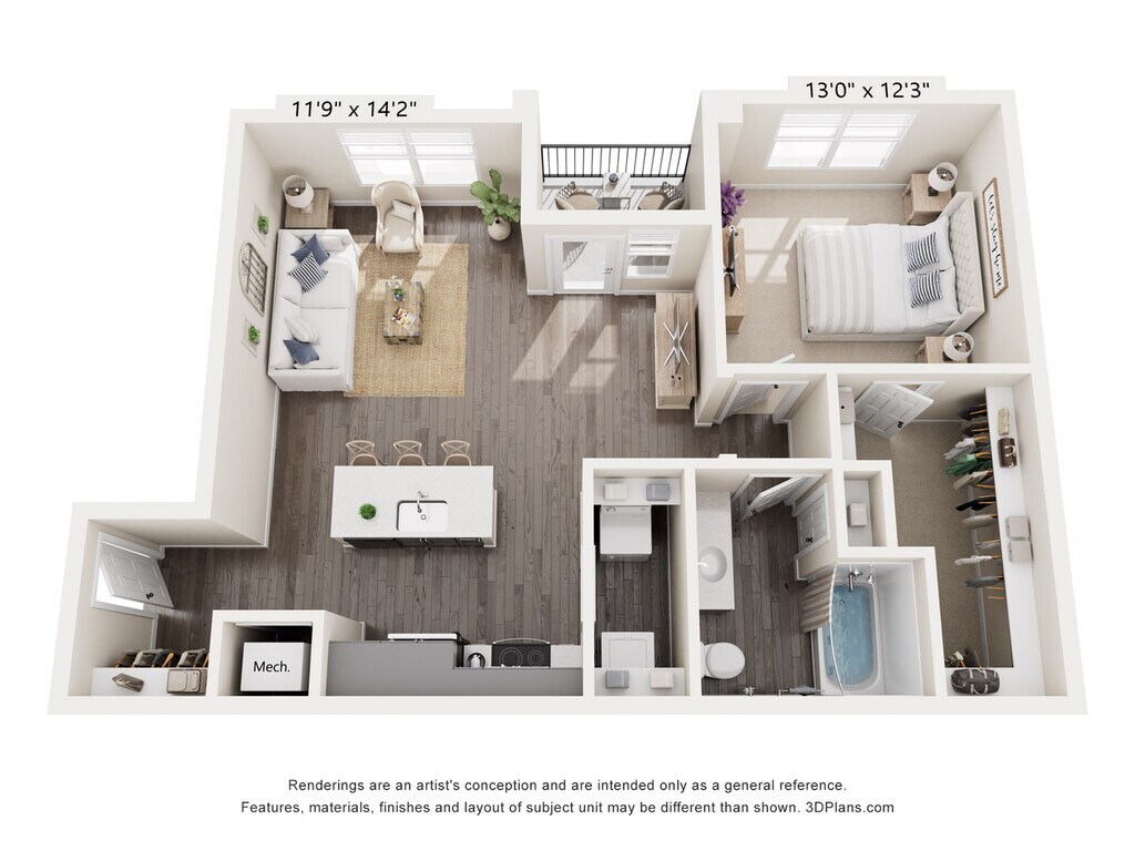 1 Dormitorio, 1 Baño, 761 pies²Disponible AhoraGalería del Modelo