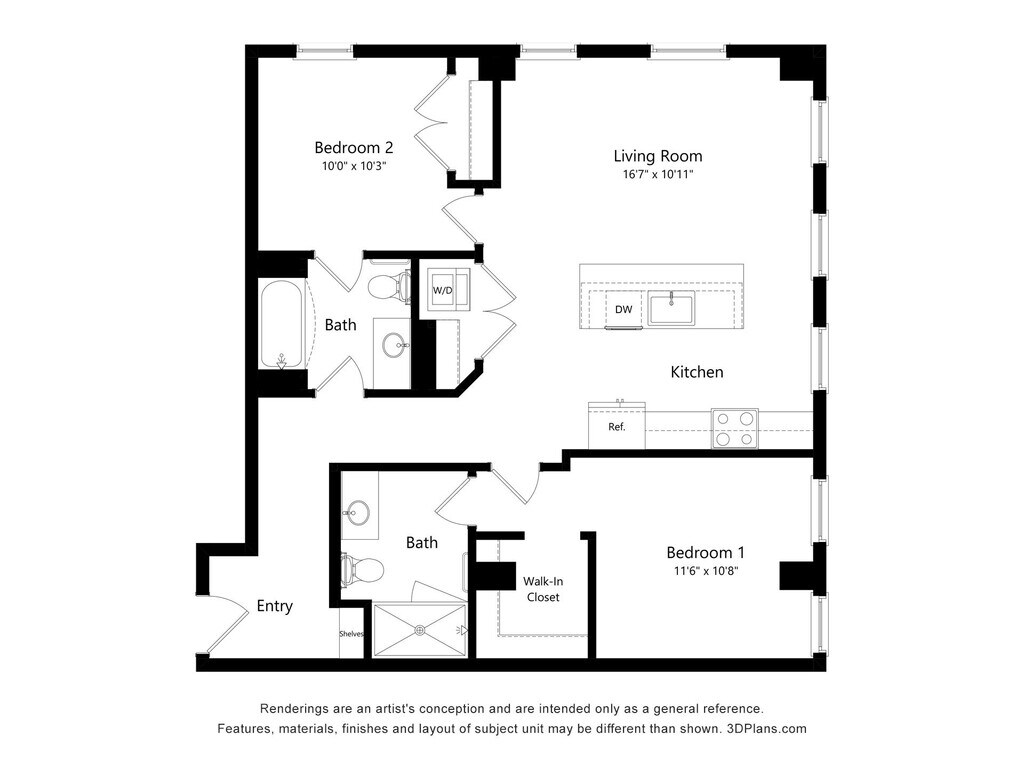 Modelo de apartamento: B3_gtDesde $1,9951 Dormitorio, 1 Baño, 843 sq ftDisponible Ahora![]()