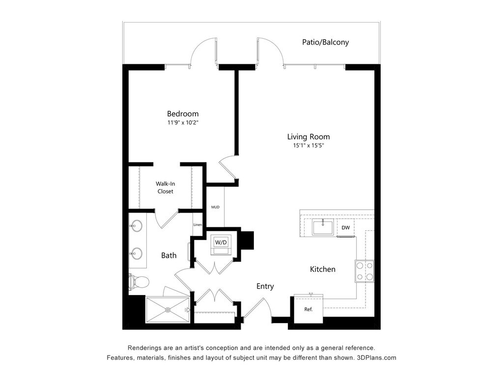 1 Dormitorio, 1 Baño, 833 pies²Disponible AhoraGalería del Modelo