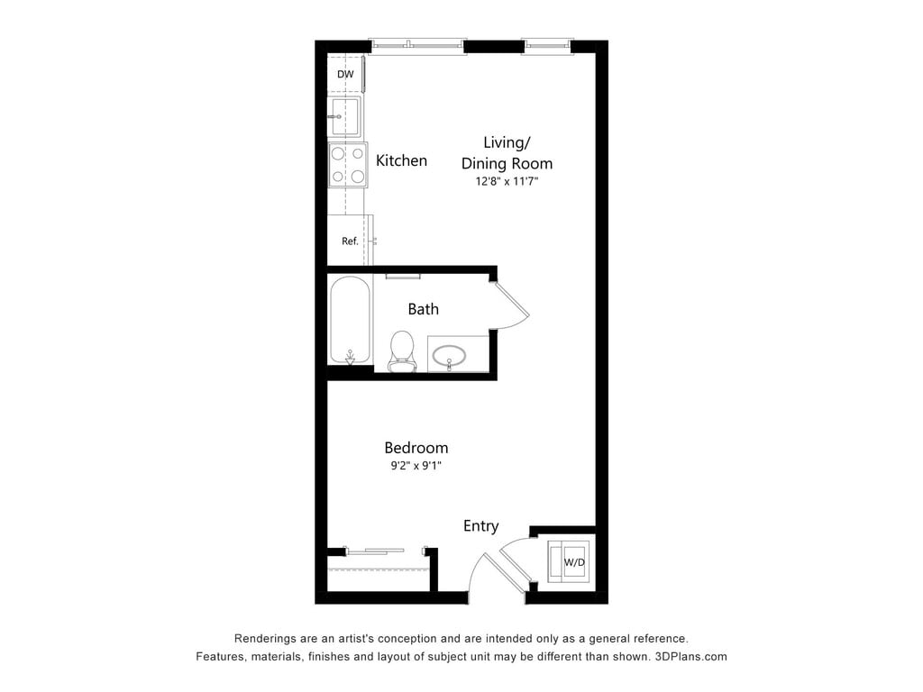 Estudio, 1 Baño, 457 pies²Disponible AhoraGalería del Modelo