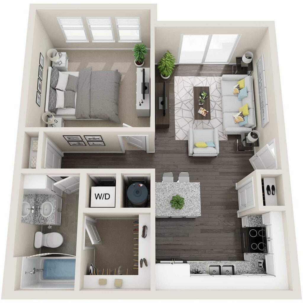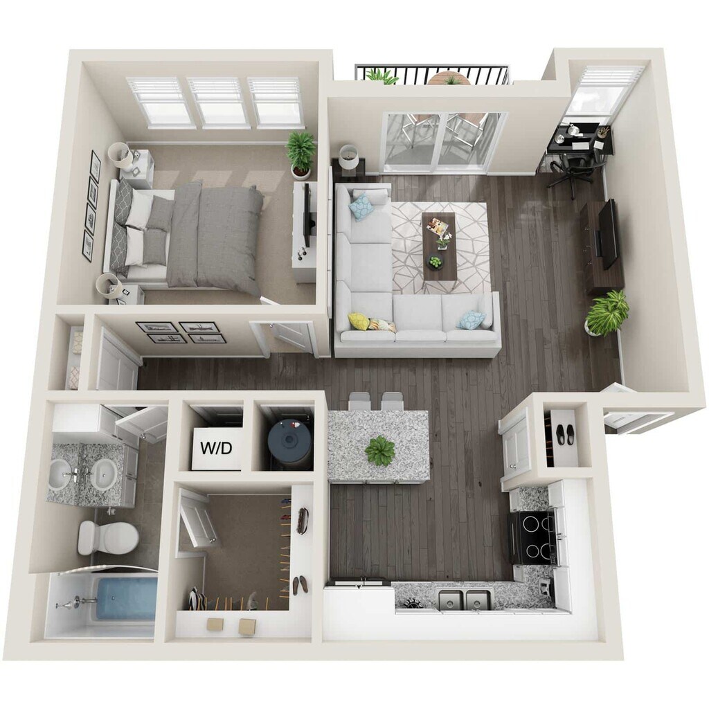 1 Dormitorio, 1 Baño, 633 pies²Disponible AhoraGalería del Modelo