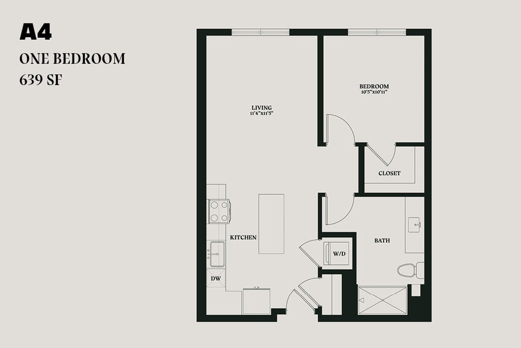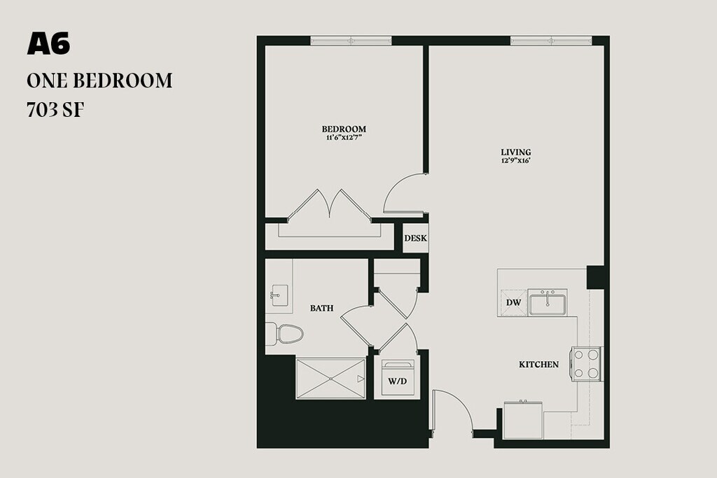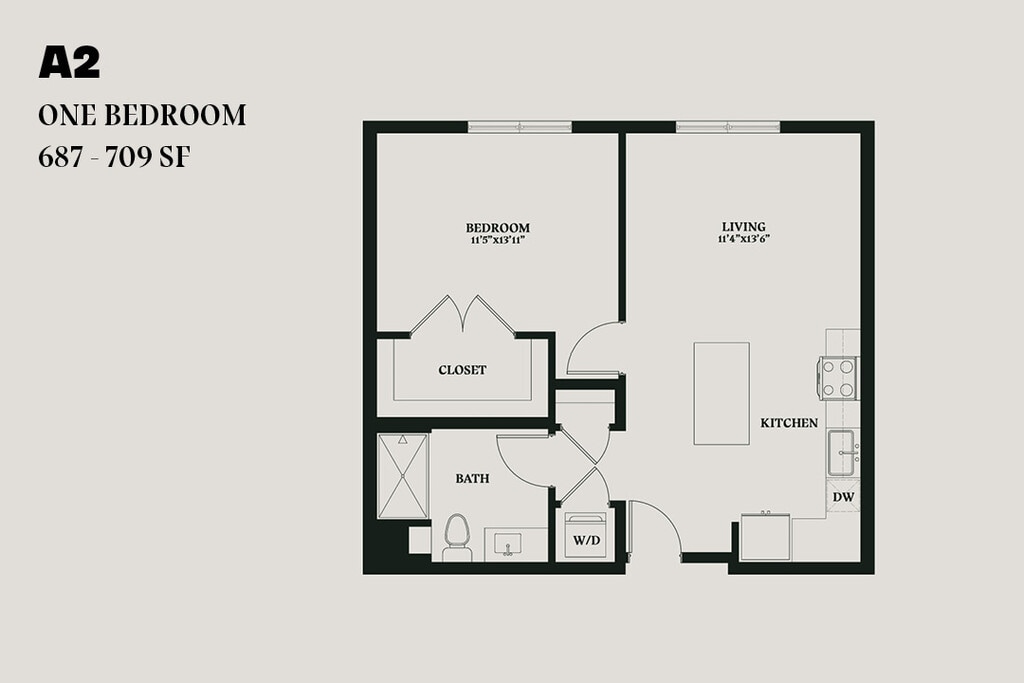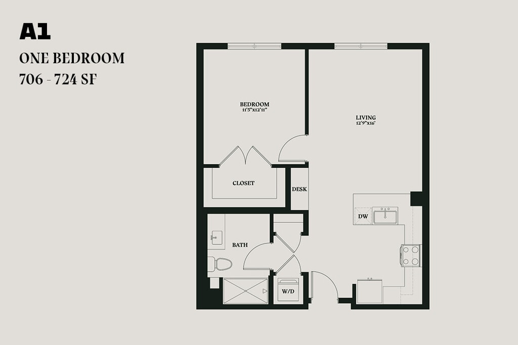 1 Dormitorio, 1 Baño, 687-709 pies²Disponible AhoraGalería del Modelo