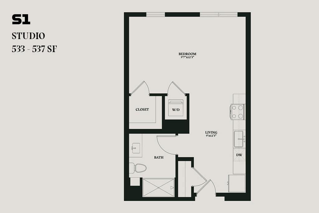 Estudio, 1 Baño, 533-537 pies²Disponible AhoraGalería del Modelo