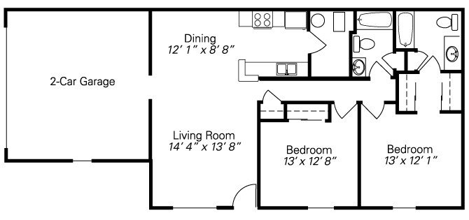 2 Dormitorios, 2 Baños, 1079 pies²El más grandeEsta opción tiene las unidades más grandes para este modeloGalería del Modelo