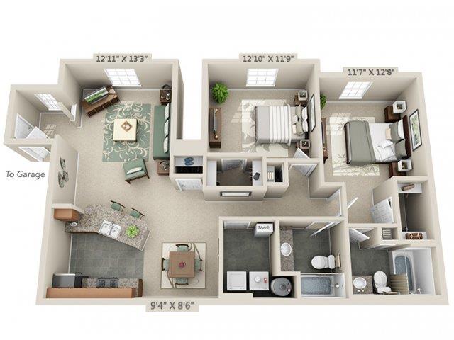 Modelo de apartamento: Horizon2 Dormitorios, 2 Baños, 1146 sq ftDisponible Ahora![]()