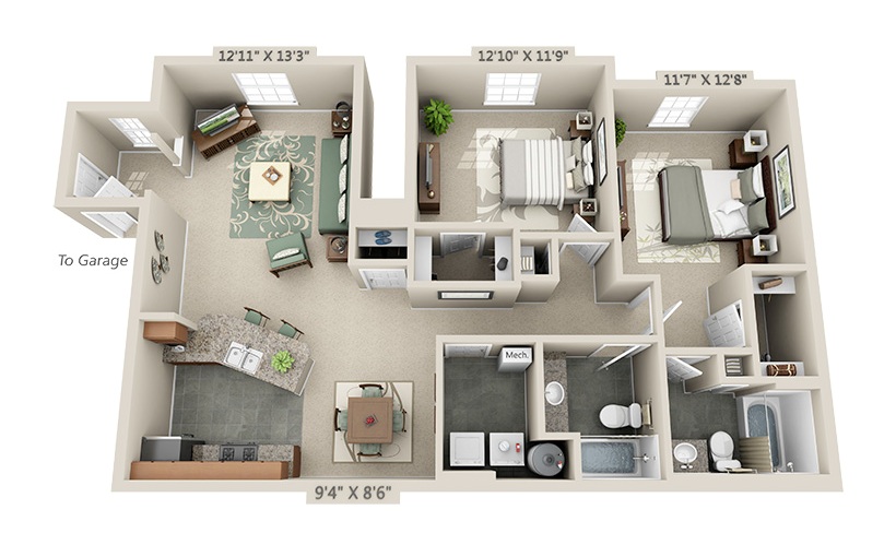2 Dormitorios, 2 Baños, 1146 pies²Disponible AhoraGalería del Modelo