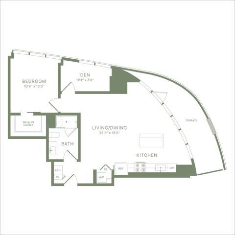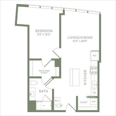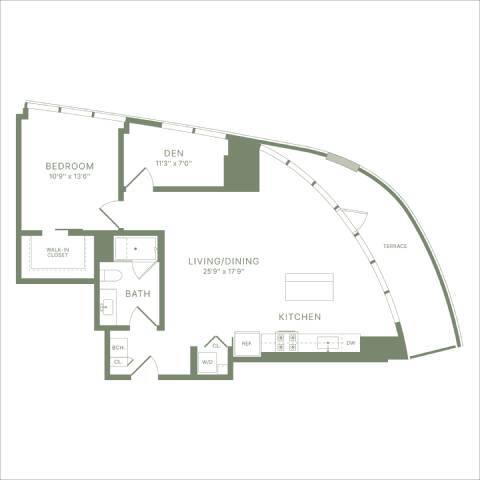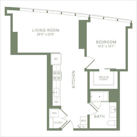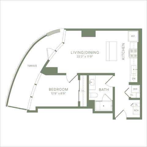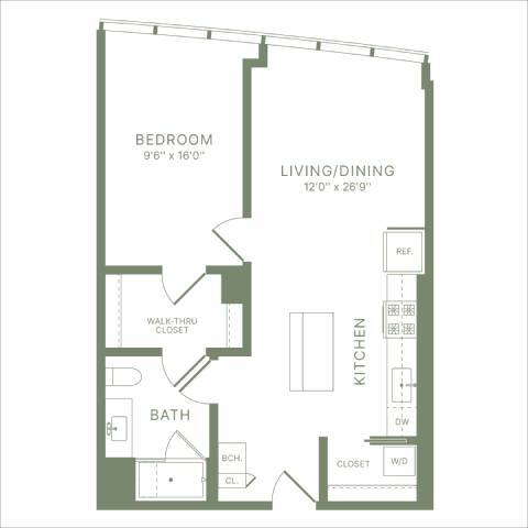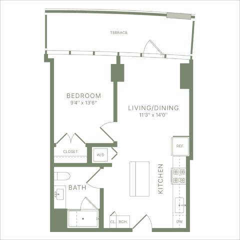Estudio, 1 Baño, 478 pies²Precio Mensual TotalDisponible AhoraPrecio Mensual Total