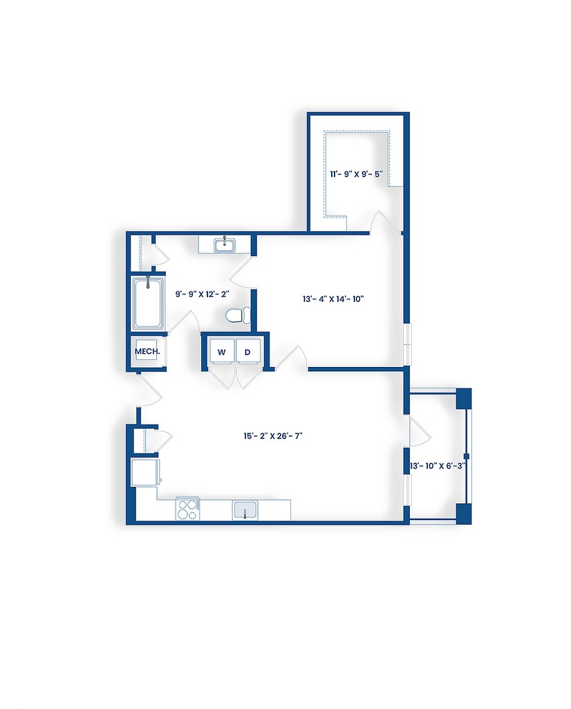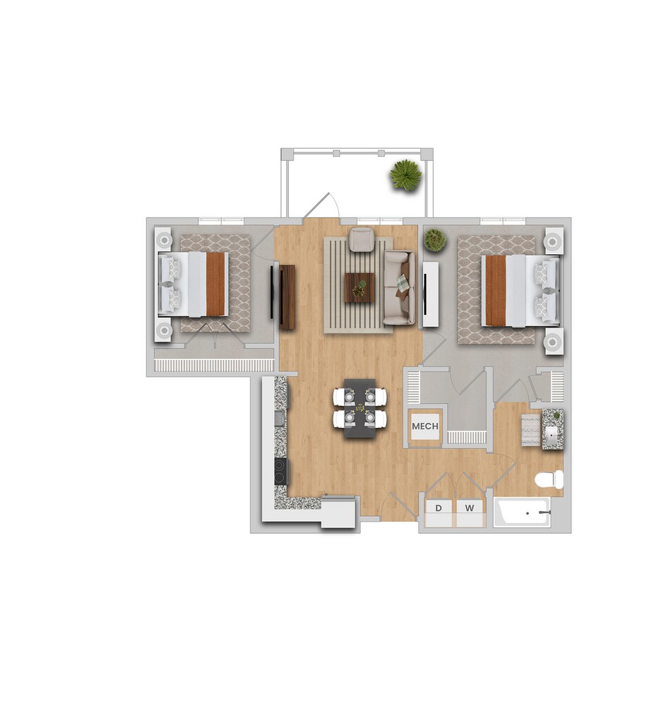 1 Dormitorio, 1 Baño, 772 pies²Disponible AhoraGalería del Modelo