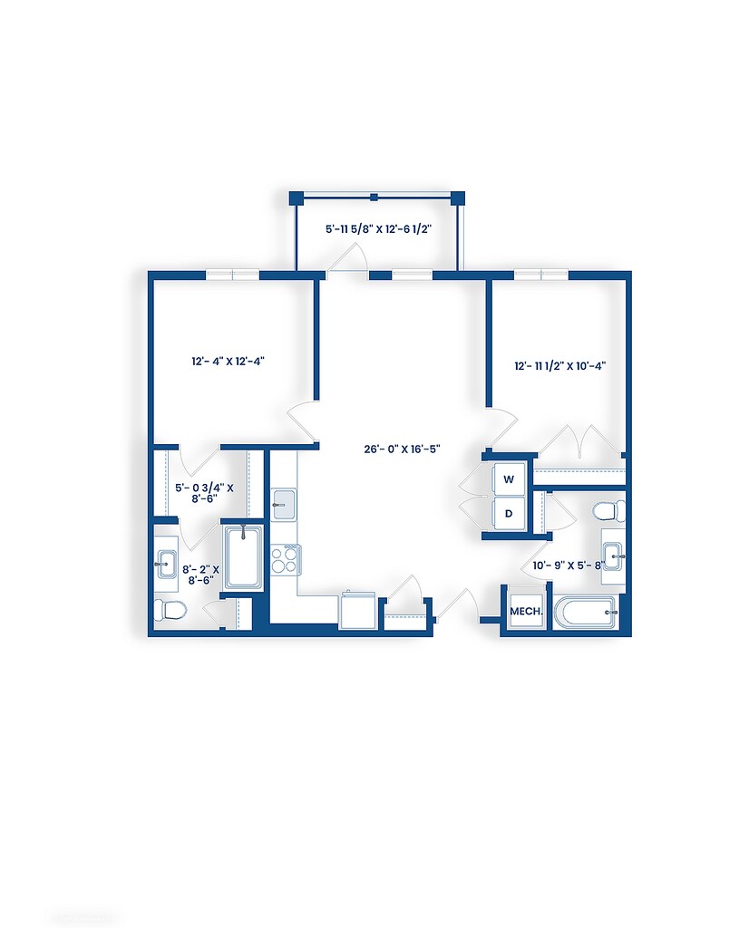1 Dormitorio, 1 Baño, 873 pies²Disponible AhoraGalería del Modelo