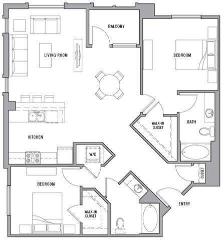 Modelo de apartamento: 1ADesde $2,2401 Dormitorio, 1 Baño, 707 sq ftDisponible Ahora![]()